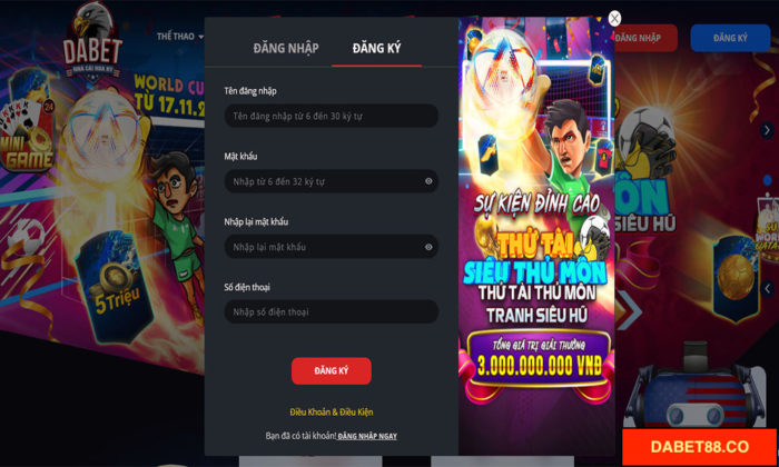 HƯỚNG DẪN ĐĂNG KÝ TÀI KHOẢN DABET